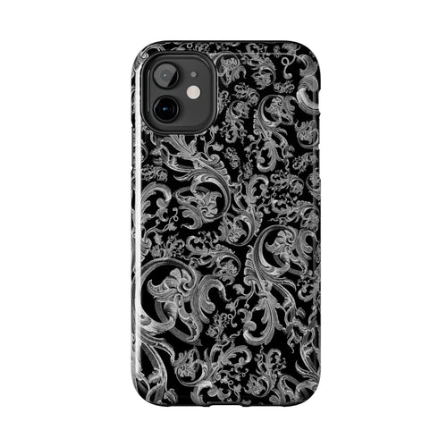 Black Baroque Scrollwork Tough Phone Case | Ornate Victorian Pattern